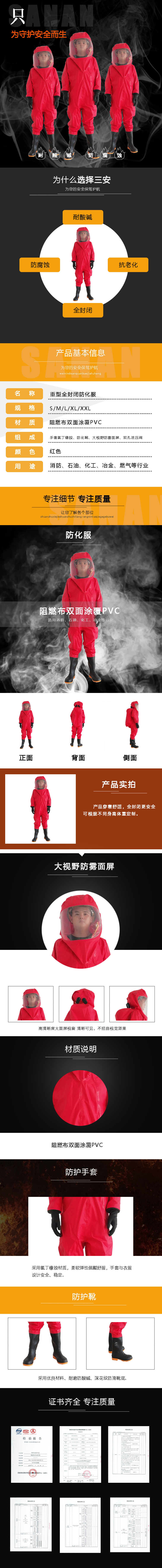 重型全封閉-PVC材質(zhì)防化服:本產(chǎn)品應(yīng)用于在化學(xué)品生產(chǎn)或泄露引發(fā)的惡性事情時穿著的防護(hù)服裝。主要適用于消防、石油、化工、軍工、冶金等行業(yè)。