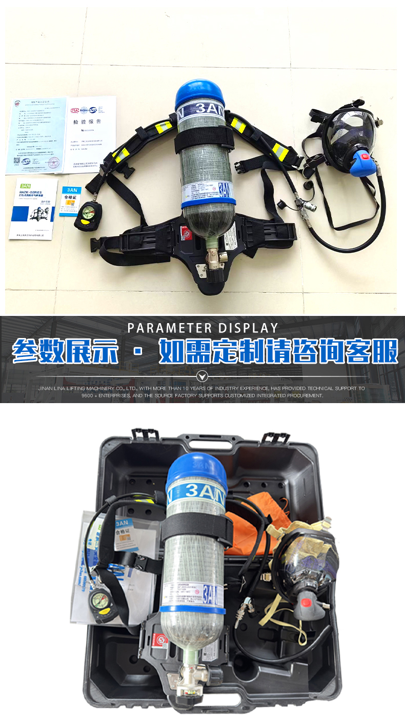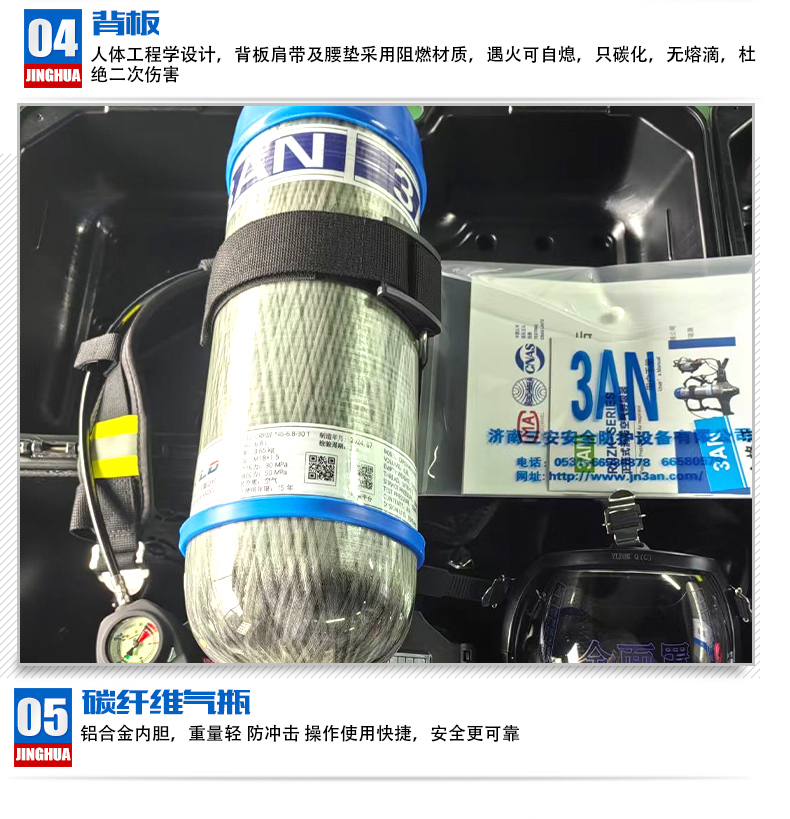 消防認證、一罐一碼,證書齊全;球形設(shè)計視野更清晰,具有防霧功能,口鼻罩采用安全無毒硅膠設(shè)計與面具貼合舒適,無異味;電集指針式與電子壓力表于一體,采用紅、黃、綠不同顏色的LED燈顯示壓力的變化范圍,結(jié)合電子壓力表使用,信號具有唯一性,同時具有跌倒報警功能;